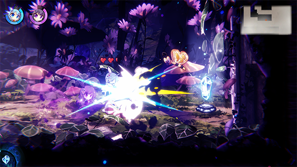 简单来说,游戏的核心玩法就是在双角色中来回切换,打出爽快的连招。玩家可以在挥舞着大锤、擅长近战的兔田,与装备着冲锋枪与炸弹,擅长远程攻击的小虎之间来回切换(切换操作同时可以强制取消行动),打出各种各样的连招!连击数还可以提升攻击力,从而更快地击败来袭的敌人。
