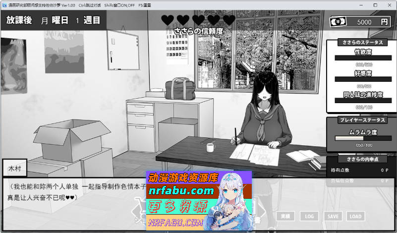 通过对话和赠送物品帮助怕生怯懦的沙罗成长为独当一面的成人同人作家,逐步解锁她的技能。