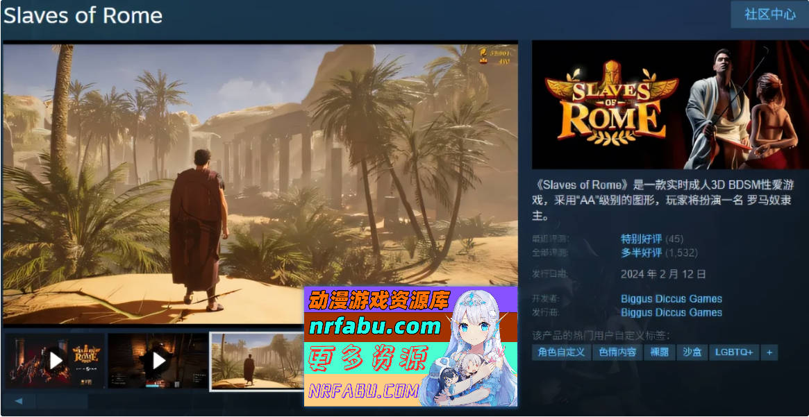 《Slaves of Rome》是一款实时成人3D BDSM性爱游戏,采用“AA”级别的图形,玩家将扮演一名