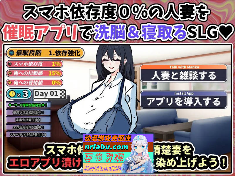 本作是一款以「人妻 × 催眠」为核心的SLG游戏。